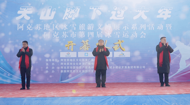 1月10日,由阿克苏地区文化体育广播电视和旅游局指导、阿克苏市文化体育广播电视和旅游局主办、新旅阿克苏文化旅游开发有限公司协办的“天山脚下过大年”冰雪旅游文博展示系列活动暨阿克苏市第四届冰雪运动会在阿克苏迎宾冰雪大世界启幕,当地相关单位代表与各族群众、游客共赴这场文旅体融合的冬日盛会。
